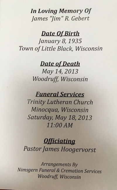 Gebert, James "Jim" R. (8 JAN 1935 - 14 MAY 2013)