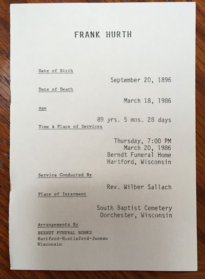 Obit: Hurth, Frank (1896 -