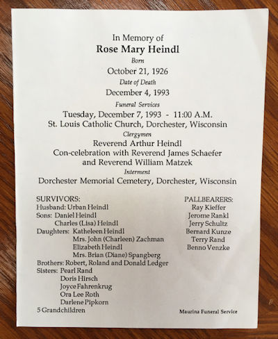 Heindl, Rose Mary (21 OCT 1926 - 4 DEC 1993)