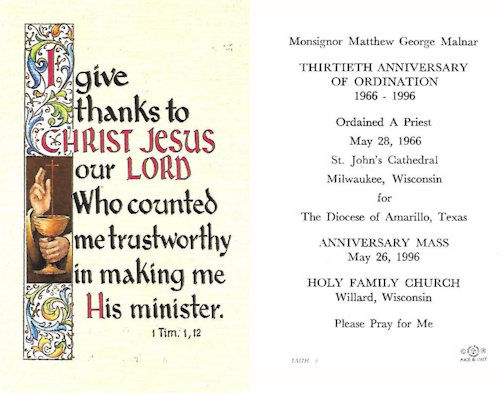 Church: Willard Holy Family - G. Malnar 30th Anniv. (1996)