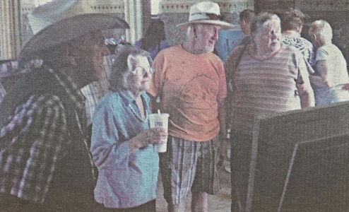 Pictured above: A group of local residents gaze through the exhibit of photos