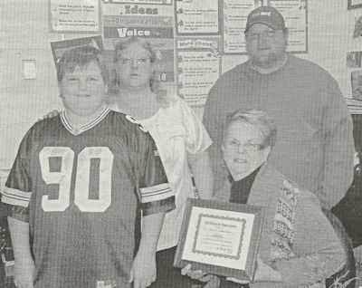 Karen Dietrich and Craig Dietrich in back and Dakota Dietrich, and Judy Smriga, teacher in front.