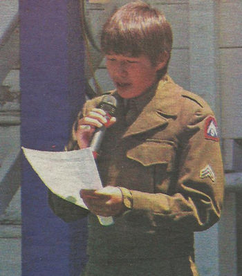 Memorial Park in Black River Falls, Craig Cleveland, 13, reads to the audience