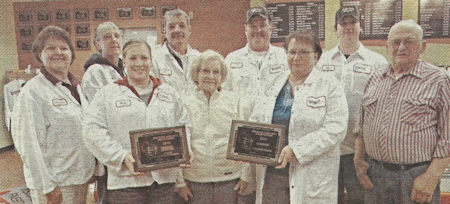 Pictured above: The staff of Nolechek’s Meats with their awards. Back (l-r) Jennifer Meckley, Meg Lynn, Bill Nolechek, Kelly Nolechek, and Chad Nolechek. Front (l-r) Marie Benzschawel, Dee Nolechek, Kathy Benzschawel, and Leo Hawkey.
