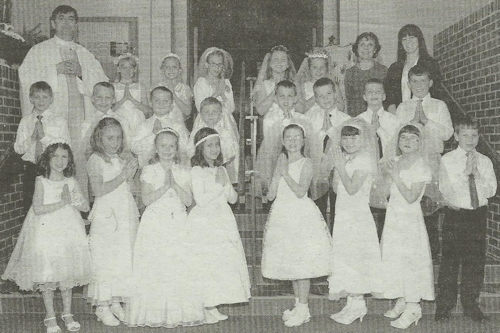 Pictured: The 21 participants of the St. Bernard – St. Hedwig First Communion,
