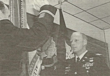 Aaron Northup (right) was promoted to major during ceremonies held April 1, in
