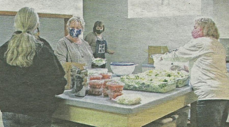 complete with a side salad. Pictured below are Peg Connelly, Jan Elfering,