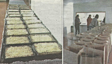 The lasagna was ready to go in the oven. Before long, over 200 meals were served