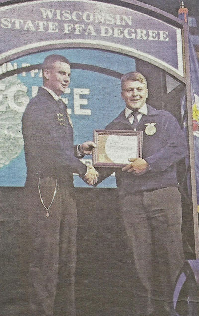 Neillsville FFA member Luke Erickson received his State FFA Degree at the Wisconsin FFA Convention earlier this month. The State FFA Degree is the highest award an FFA member can earn at the state level. Erickson earned his degree in 2020 and was recognized along with the other 2020 award winners at this year’s convention since there was not in-person convention last year. Submitted Photo
