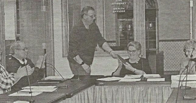 Neillsville common council president Joe Neville presents outgoing mayor Diane