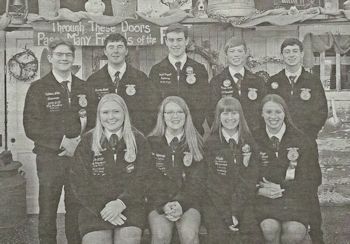 A group of nine Loyal High School FFA members attended the Wisconsin FFA Convention at Alliant Energy Center in Madison June 13-16: (front, l-r) Devani Hinkelmann, Tanna Luchterhand, Halle Aumann, Aspen Hagen, (back) Nick Wilke, Brandon Jakobi, Micah Kayhart, Parker Smith and Jarrett Rueth. Students heard from motivational speakers, got to check out what projects other FFA students from around the state were doing and competed for awards for the various agriculture-related projects they have done.