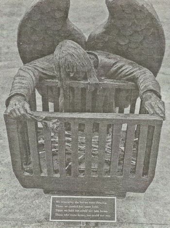 designed by Timothy Schmalz, depicts an angel weeping over an empty crib. The