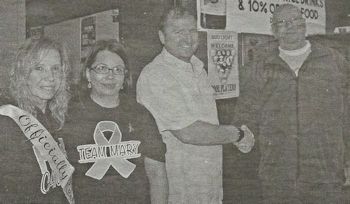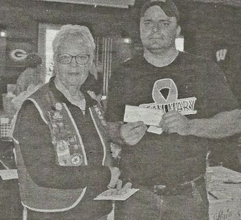 presents Brandon Zilk with a donation of $100 at the Oct. 9 Mary “Dee-Dee”