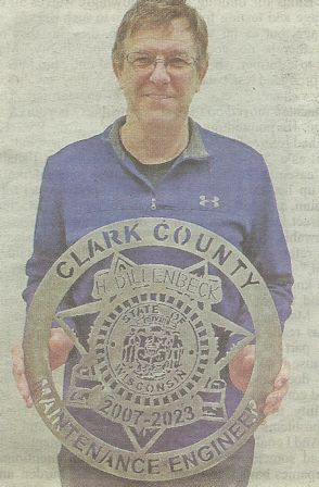 County maintenance engineer Harold Dillenbeck received an emblem from Clark