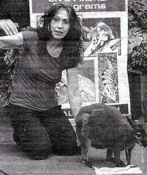 Noelle Bezio holds Wandy the Wallaby while she eats banana peels. June