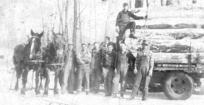Lester Bloom, next to team of horses, logging on Hardrath land in Section 22 of the Town of Beaver, Clark County, WI Wedding of Zada Cain & Lester Bloom |