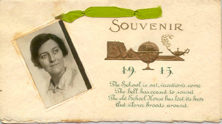 Christopherson Souvenir (1915) Milt Ystad had this souvenir from his mother's teacher at Christopherson School in 1915. On the front is a photo of Maud Miller, the teacher, along with a rhyme. |