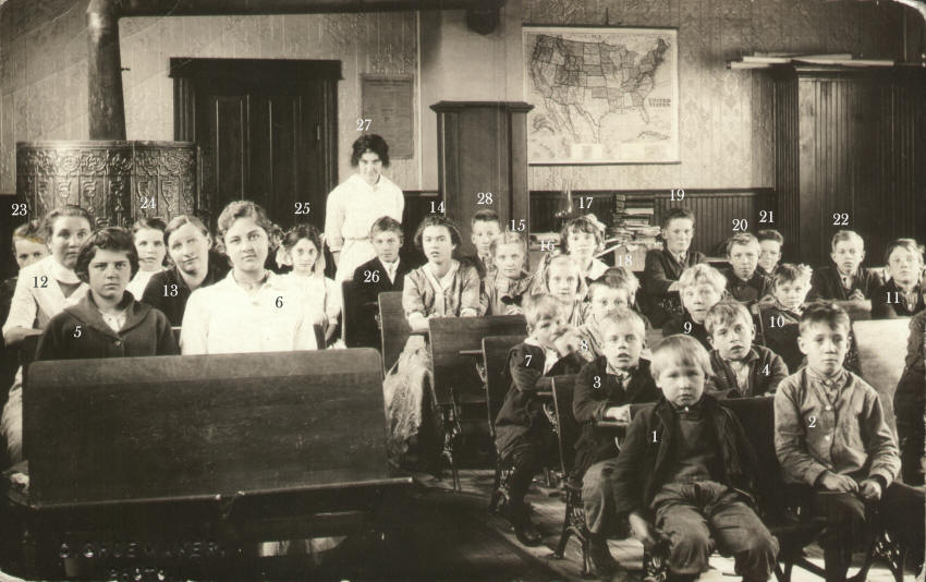 The back of this photo postcard had the names, Farmer, Anna Audorff, Roy Morrison, Flor Francis, Helen Farmer, Art Taylor, Roy Taylor, (x)Farmers(x) Audorff, Salome Lois, Hattie Maude & Lottie Ruth.