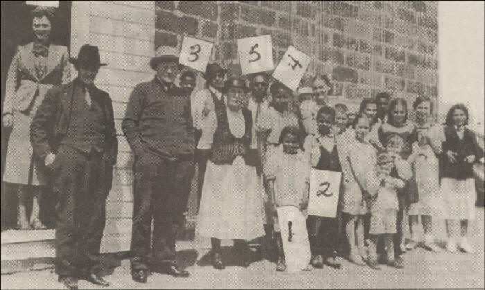 This school once existed 5 1/2 miles south of the Cloverleaf Cheese Factory. We don't know all the names of those in the photo above but those numbered are as follows: 1-Naomi Reasby, 2-Edward Reasby, 3-Clarence Reasby, 4-Ruth Reasby, 5-Father William, and 6-Audrey Luckin (Teacher).