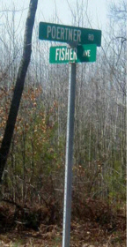 on Fisher Avenue, at the junction of Poertner Road. The marker on this little