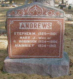 otn | Andrews, Stephen M. | 00-C009-01 | 14 Jun 1828 | 14 Sep 1901 | Harriet Campbell | 2 Sep 1851 | Alcana & Elizabeth Andrews | .OBIT |