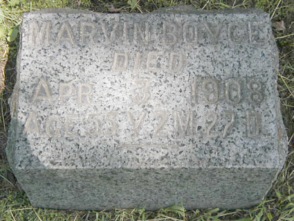 tn | Boyce, Marvin | 12-D046-01 | 4 Jan 1853 | 3 Apr 1908 | Alansan Boyce & Unknown | b-est, aged 55yrs,2mo,27dys; b. Oswego Co., NY; Also spelled Bojc |