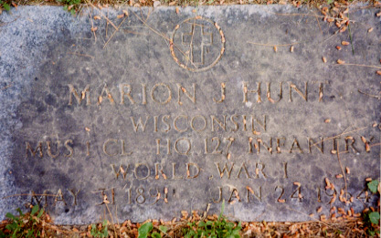 cso | Hunt, Marion J | 00-B059-06 | 31 May 1891 | 24 Jan 1964 | m. | Henry & Mary Hunt | WW1 Vet- 32nd division, d. Tomah Vet. Home | |