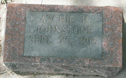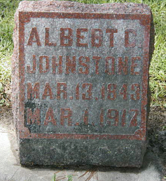 to | Johnstone, Albert C. | 13 Mar 1843 | 1 Mar 1917 | Andrea Olson | 1888 | d. St. Joseph's Hosp. Marshfied Wi, stom. Cancer | ||