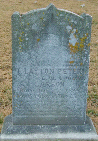 tc | Larson, Clayton Peter | 00-B019-01 | 27 Aug 1895 | 29 Jul 1897 | Lewis W. & Mary E. (Peterson) Larson | |||