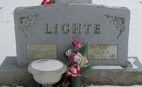 to | Lichte, Gerhardt E. | 05-G021-08 | 11 Apr 1912 | 15 Dec 1987 | Ella A. | 8 Sep 1936 | ||