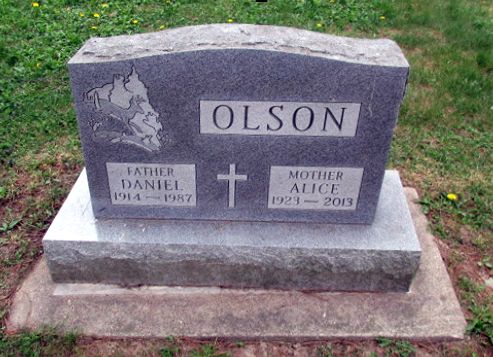 to | Olson, Daniel Frederick | 05-G019-08 | 6 Jul 1914 | 28 Nov 1987 | Alice Ruth Wendt | 3 Jun 1942 | Henry & Ellenora S. (Soefker) Olson | d. St. Joseph's Hospice Unit, Marshfield, WI |