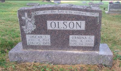 to | Olson, Oscar J. | 05-G010-02 | 11 Jul 1913 | 25 Feb 1983 | Ermina G. Simmons | 16 Oct 1936 | John & Thora (Bragstad) Olson ? | obit states d. was 2/25/1983 |