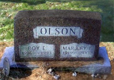 cso | Olson, Marjory Evelyn | 03-G13-03 | 28 Jun 1919 | 20 Dec 2002 | Roy E. Olson | 28 Jun 1919 | Clifford & Bessie (Ulrey) Manier | b. in Stanley, WI & d. Mem. Hosp. Prairie Du Chien, WI |