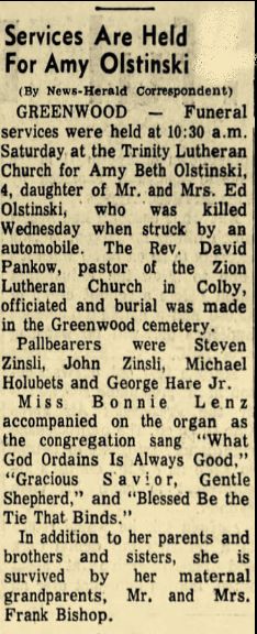 to | Olstinski, Amy Beth | 03-G008-01 | 5 Jun 1965 | 16 Jul 1969 | Ed & Glenda (Bishop) Olstinsksi | killed by car | ||