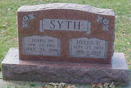 to | Syth, John Henry | 02-D159-02 | 27 Apr 1910 | 24 Jul 1999 | Helen Christine Gerhardt | 21 Nov 1930 | Robert & Emma (Neville) Syth | b. Eaton Twp., Clark Co., & d. Neillsville Medical Cnt. |