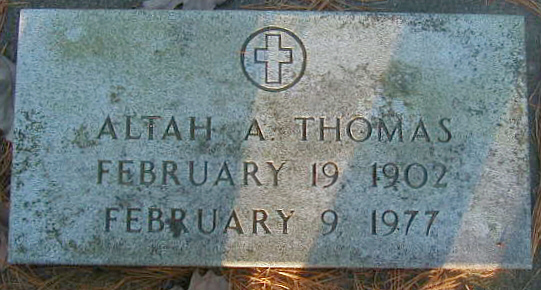 to | Thomas, Altah A. | 01-B005-07 | 19 Feb 1902 | 9 Feb 1977 | Melvin Thomas | 2 Aug 1920 | Arthur & Bessie (Morse) Sischo | |