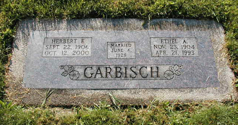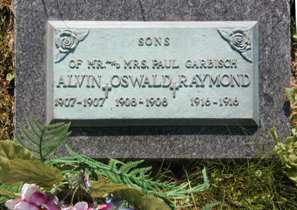 Family records indicate 1906. Tombstone says 1907. Common tombstone for Alvin, Oswald and Raymond Garbisch was probably made after Raymond's death in 1918 |