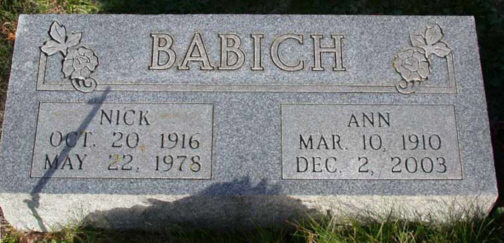 Babich, Ann | 10-May | 1910 | 2-Dec | 2003 | Nick Babich | Parkel | |||