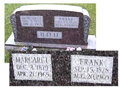 o = obituary, f = family record, t = tombstone, c = cemetery record, n = Neillsville Court House record, s = social security death index, m = marriage announcement, q = query, z = Info provided by Lani Bartelt; x = Photo by Mary Urban |