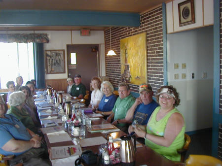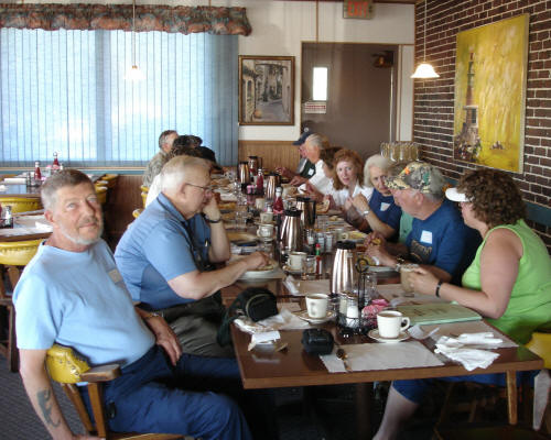 Monday morning between 7:30 and 9:15 family members met and socialized at the Thorpedo Restaurant in Thorp, and had the honor of having Crystal Wendt and Allen Wire and his wife join us. (Not everyone may know that Crystal is the Buff I was so happy to have met for the second time because she is the one who had transcribed Israel Clark’s obituary that made all of this dedication and the July 4, 2006 celebration possible.)