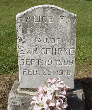 t | Gehrke, Alice | Row M Lot # 10 | 19 Sep 1909 | 25 Feb 1910 | Ernest Edward Gehrke & Ruby Holcomb | |||
