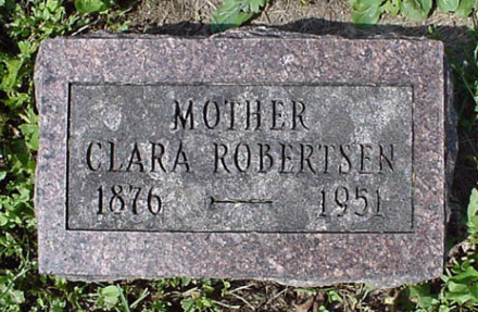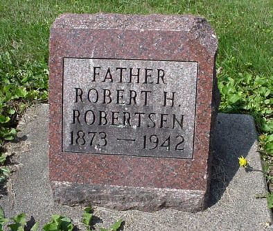 to | Robertsen, Robert H. | Row M Lot # 9 | 15 Apr 1876 | 9 Apr 1942 | b. Denmark; obit says Robertson | Clara Gehrke | 14 Apr 1894 | Peter Rasmussen |