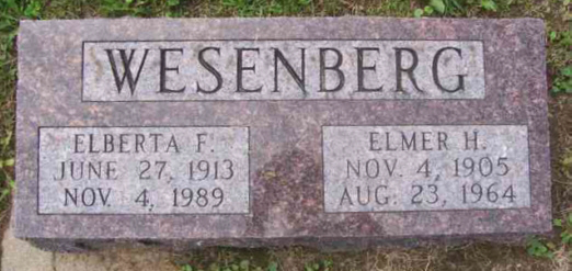 26-Aug | 1964 | Elberta F. Kiddo | 18-Nov | 1937 | Ferdinand & Della (Campbell) Wesenburg | |