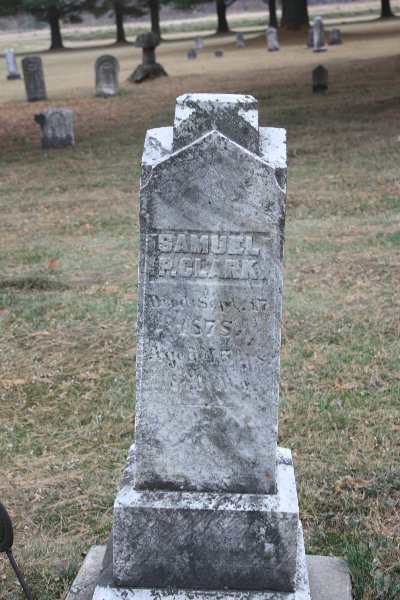 ct | Clark, Samuel P.; #1 | 17/-/147 | Aug 1823 | 17 Sep 1878 | Vet- Civil War-35th Inf.; Age 45 yr, 1 mo; Cem list says D. Civil War Vet | |||