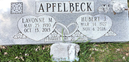 oj | Apfelbeck, Hubert J. "Hub" | Q/12/2-3 | 14 Mar 1927 | 4 Nov 2016 | b. Abbotsford, WI | Lavonne Prucher | 20 Jan 1949 | Carl & Margaret (Ohlinger) Apfelbeck |
