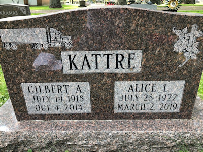 ctoj | Kattre, Gilbert L. "Gil"; #2 | M/14/1 | 19 Jul 1918 | 4 Oct 2014 | b. Plymouth, WI; WWII - Tech5, US Army | Alice Kalepp | 11 Aug 1945 | Edward & Minnie (Herwig) Kattre |
