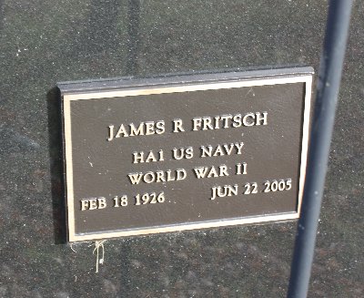 cto | Fritsch, James R.; #1 | NC-05-02 | 18-Feb-1926 | 22-Jun-2005 | WWII-Ha1 U.S.Navy | Joyce L. West | 14-Jun-1952 | John F. & Annie L. (Younker) Fritsch |