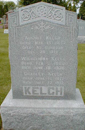 ctb | Kelch, August; #1 | OC-27-30 | 15-Mar-1857 | 29-Dec-1919 | d. rcd 9-241; d. in Oshkosh | Wilhelmina Punzel | 14-Jun-1877 | Unknown |