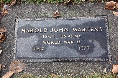 txb | Martens, Harold John; #1 | OC-14-34 | 1912 | 1979 | WWII-Tec 4 US Army | Fred & Mabel (Barker) Martens | ||