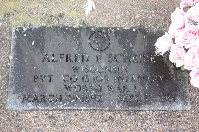 ctob | Scheibe, Alfred E. | OC-12-08 | 2-Mar-1892 | 13-Sep-1961 | WWI-WI Pvt Co G 109 Inf | Single | Henry & Emma Scheibe | |